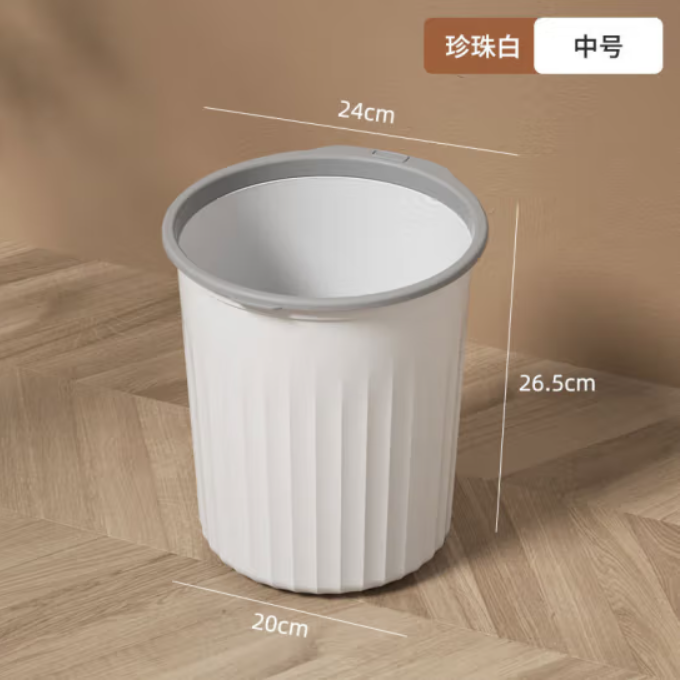 垃圾桶客厅厨房浴室大容量无盖大口径加厚压圈垃圾篓 中号白色