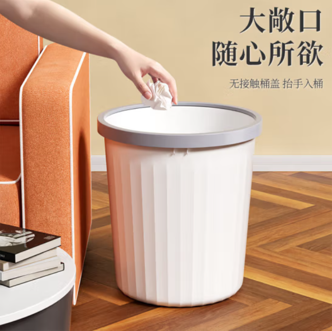 商品名称:垃圾桶客厅厨房浴室大容量无盖大口径加厚压圈垃圾篓