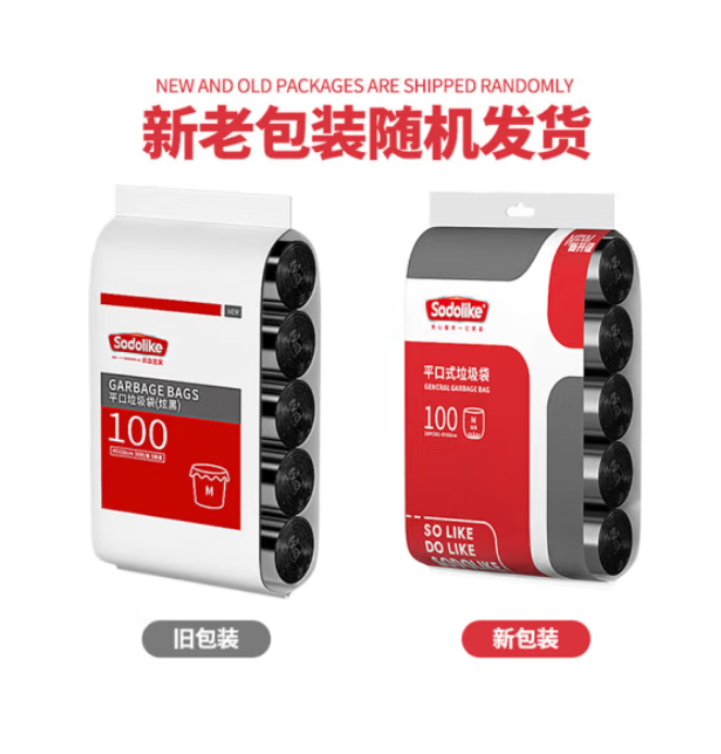 Sodolike点断式垃圾袋中号加厚45*50cm*5卷平口家用办公垃圾袋
