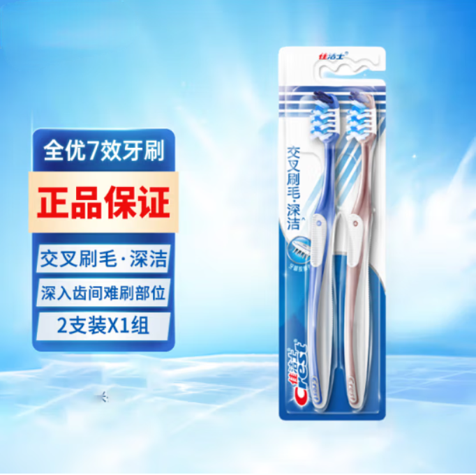 佳洁士牙刷男女家庭装 全优七效牙刷 2支 交叉刷毛·深洁